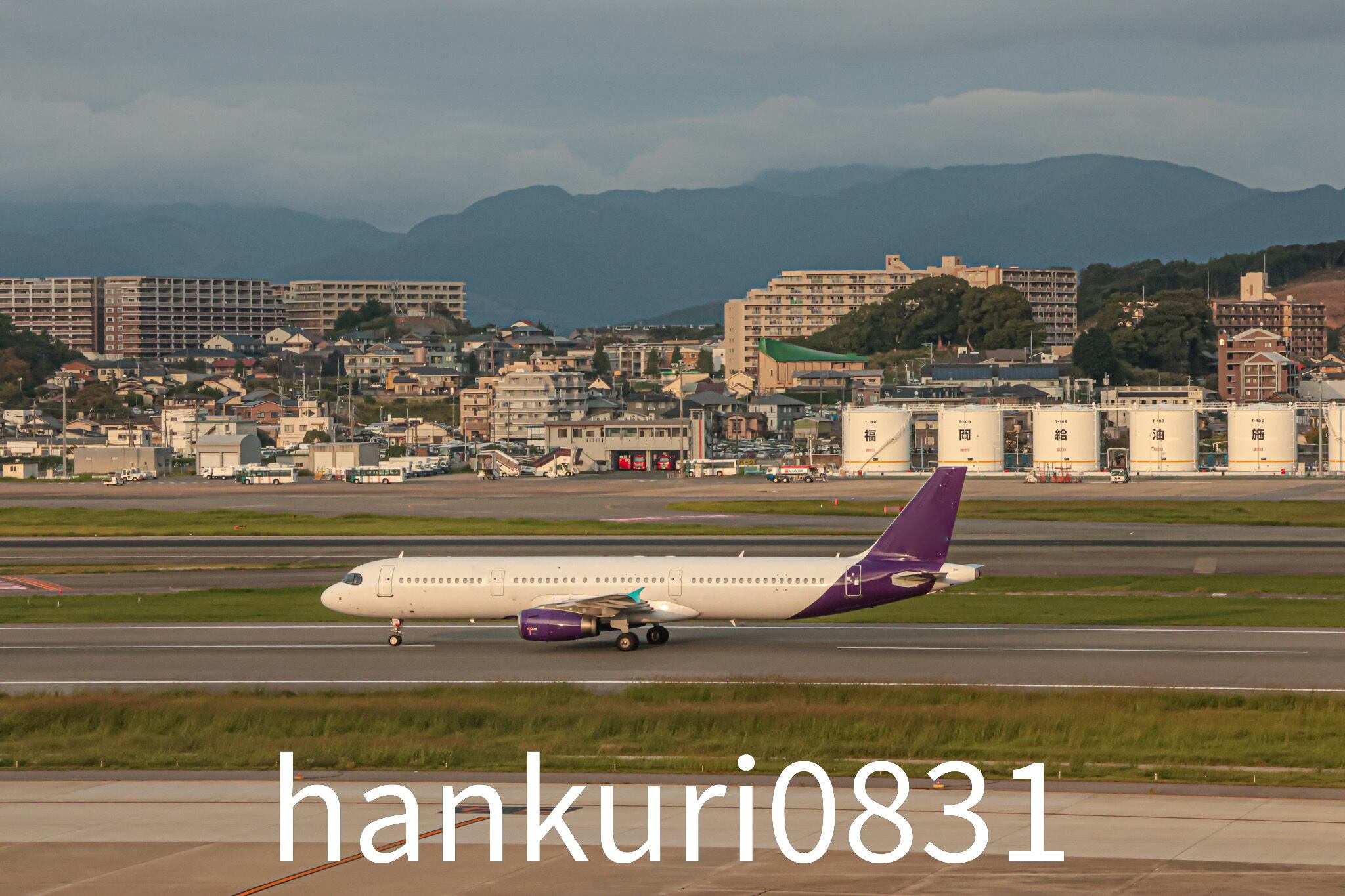 夕暮れの光に染まる福岡空港