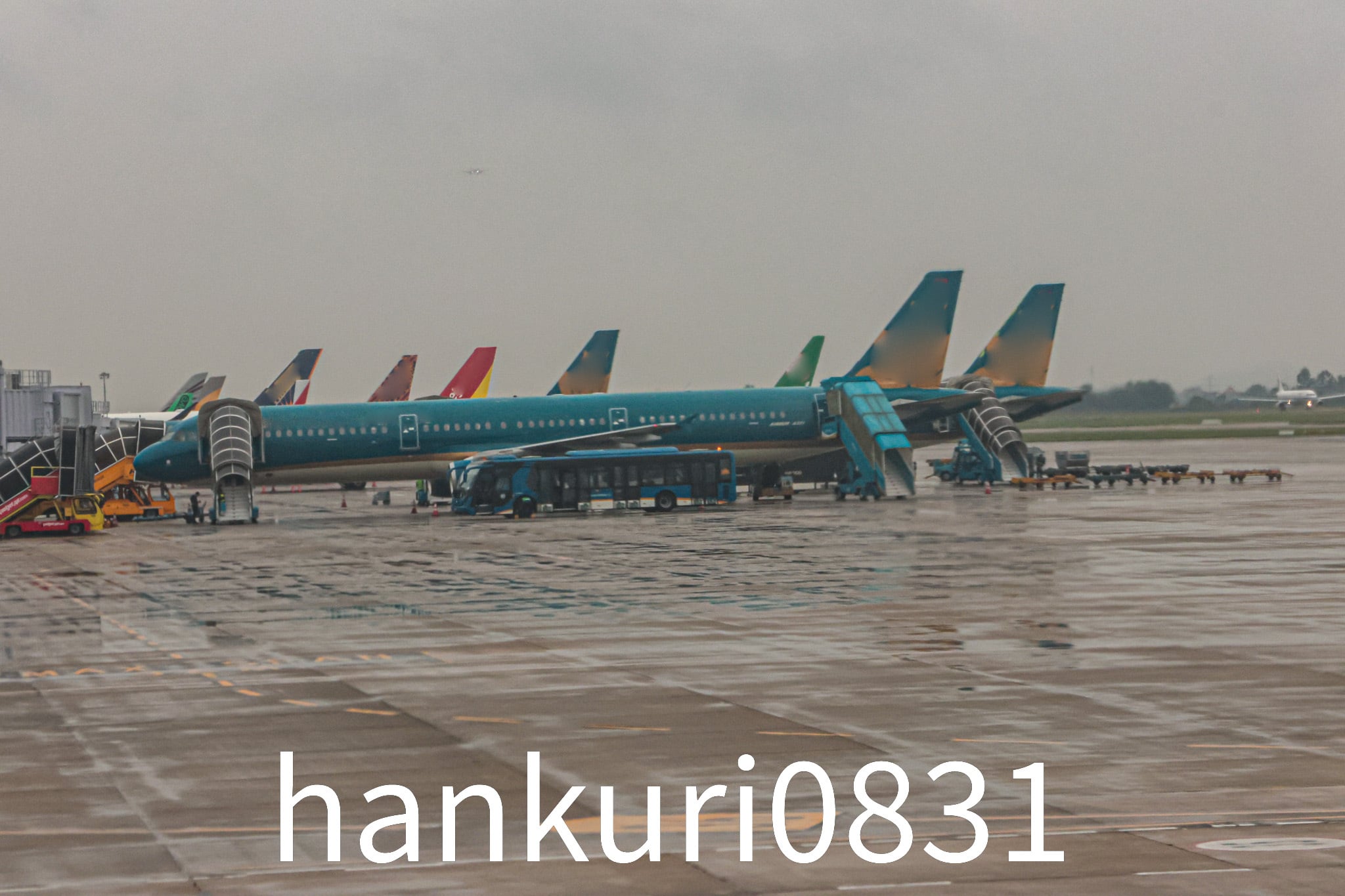 Air Traffic at Noi Bai International Airport in Cloudy Weather