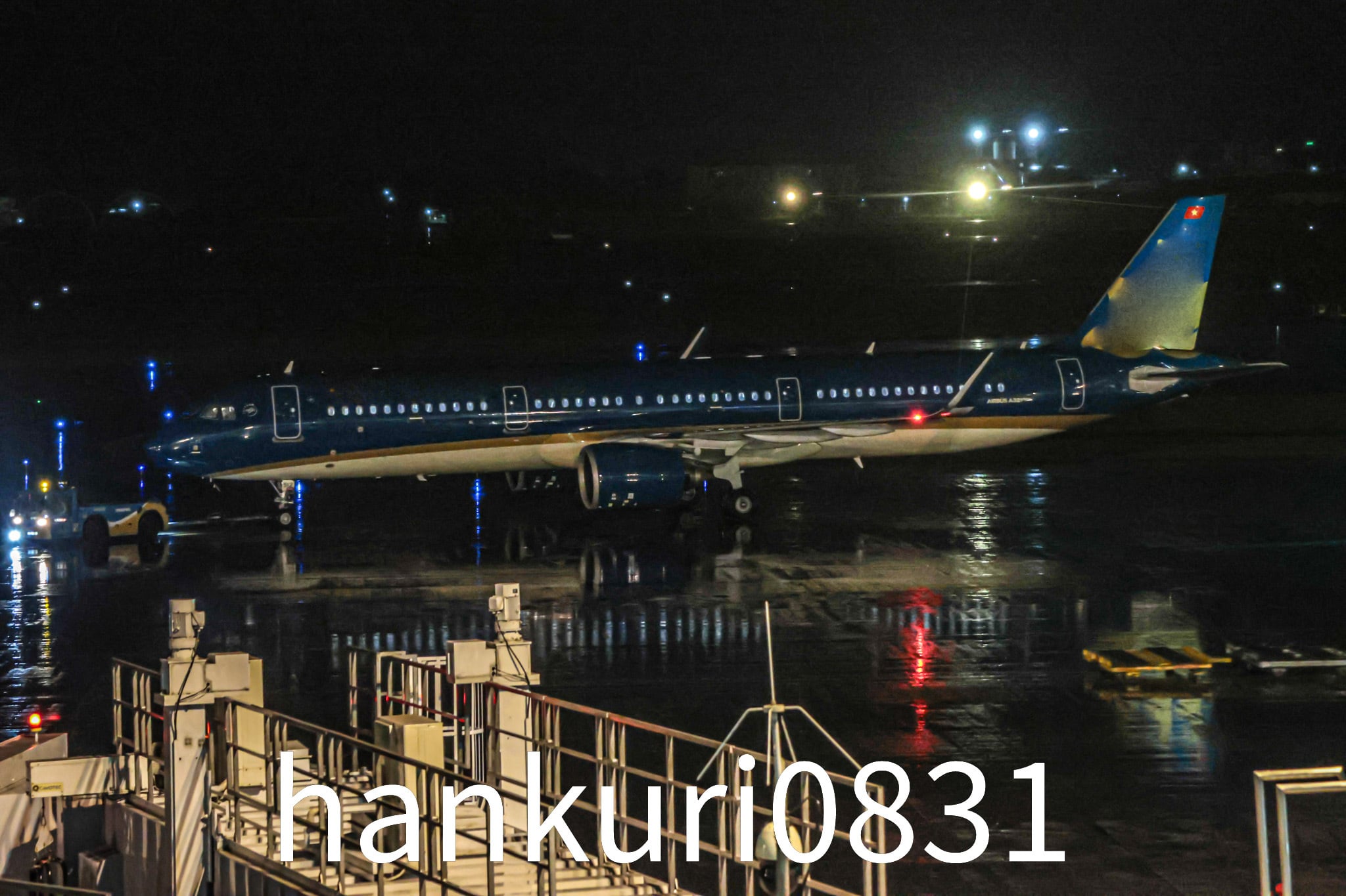 光に包まれたノイバイ空港の夜間航空風景