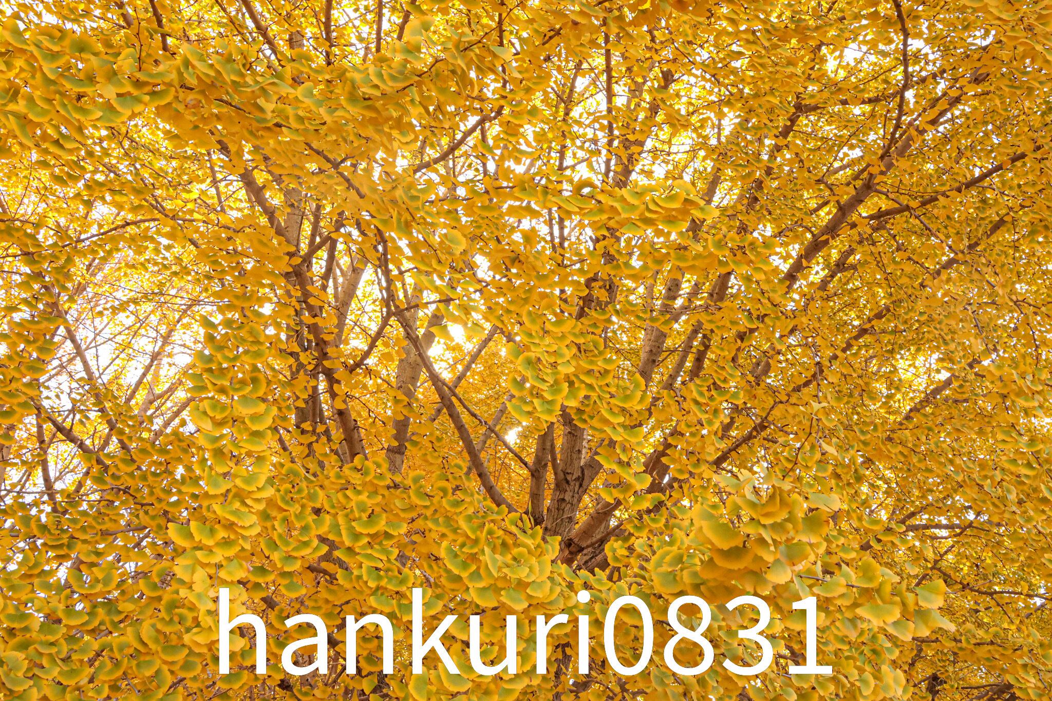 黄金色の秋景色を作るイチョウの木々