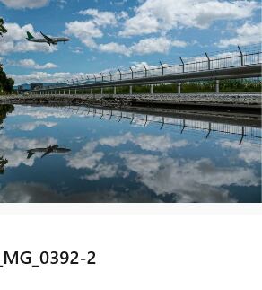 飛行機の着陸する瞬間を撮影しました。その日は雨が降った後で、滑走路の近くに大きな水たまりができていました。ちょうど飛行機が滑走路に近づく時、その水たまりに反射する姿がまるで鏡に映るように幻想的で、現実感が薄れる瞬間でした。