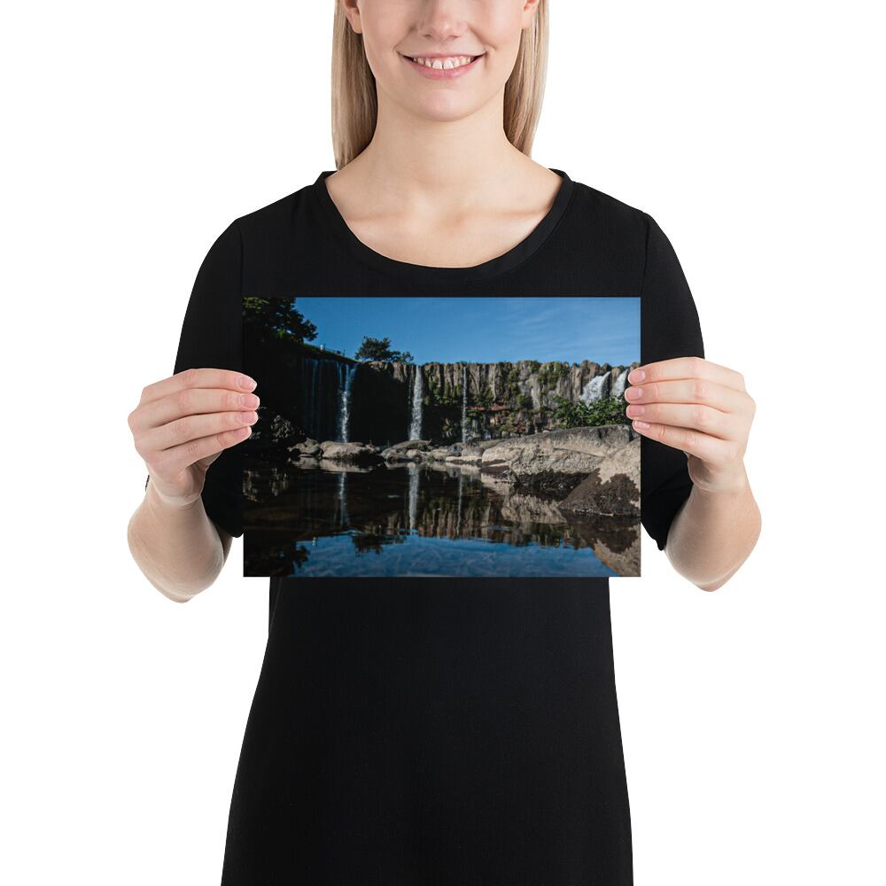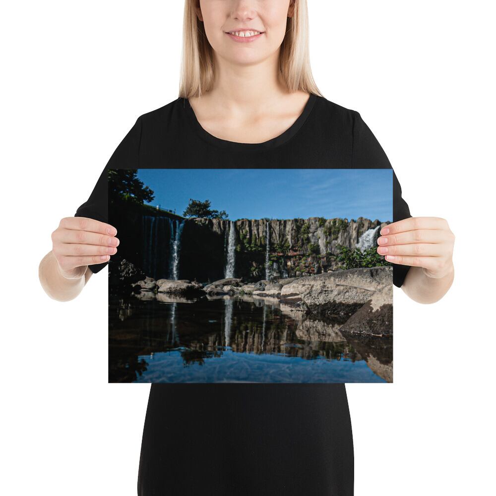 水面に映る滝の姿を捉えるために、カメラの位置や角度を調整し、光の具合にも気を付けながらシャッターを切りました。水面に映る滝の反射が、まるで別の世界に誘うような幻想的な雰囲気を醸し出しています。普段の滝の姿とは一味違った美しさがあり、自然の力強さと静けさが同時に感じられる瞬間でした。
