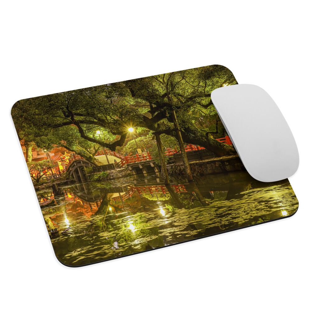 まだ空が暗いうちに、太宰府天満宮へと続く参道を撮りました。ひんやりと澄んだ空気の中、参道にかかる橋がライトアップされていて、幻想的な雰囲気が漂っていました。